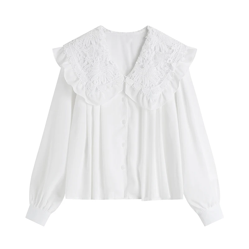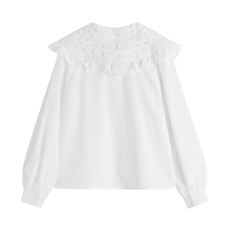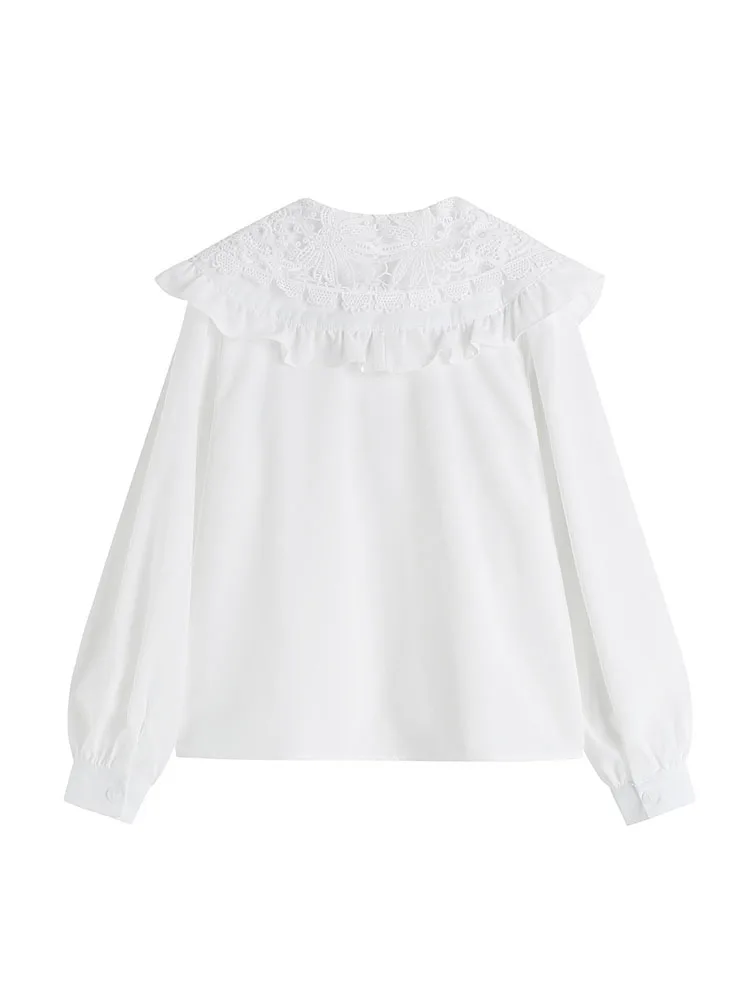 Женская кружевная блузка, элегантная офисная белая блузка с круглым воротником, винтажная Повседневная рубашка из поплина, новинка весны 2022