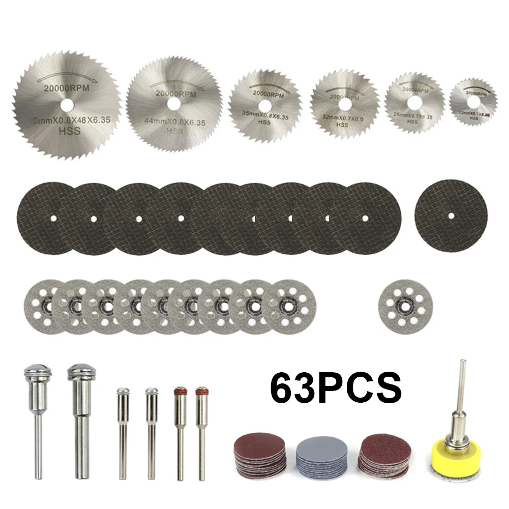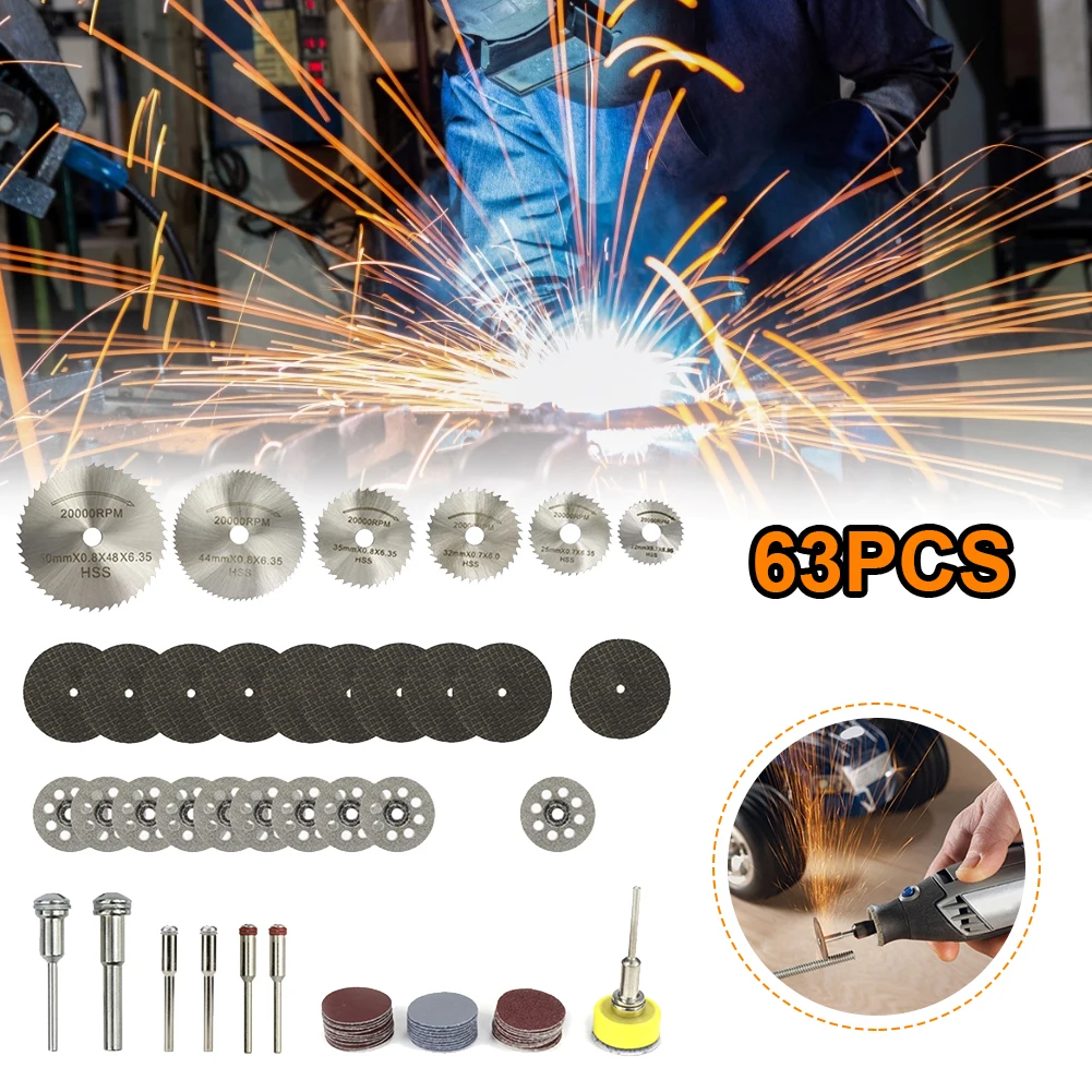 2022 63 шт. режущий инструмент, лезвия для пилы для Dremel, металлический резак, электроинструменты, вращающийся инструмент, деревянные режущие диски, сверло, оправка, отрезка