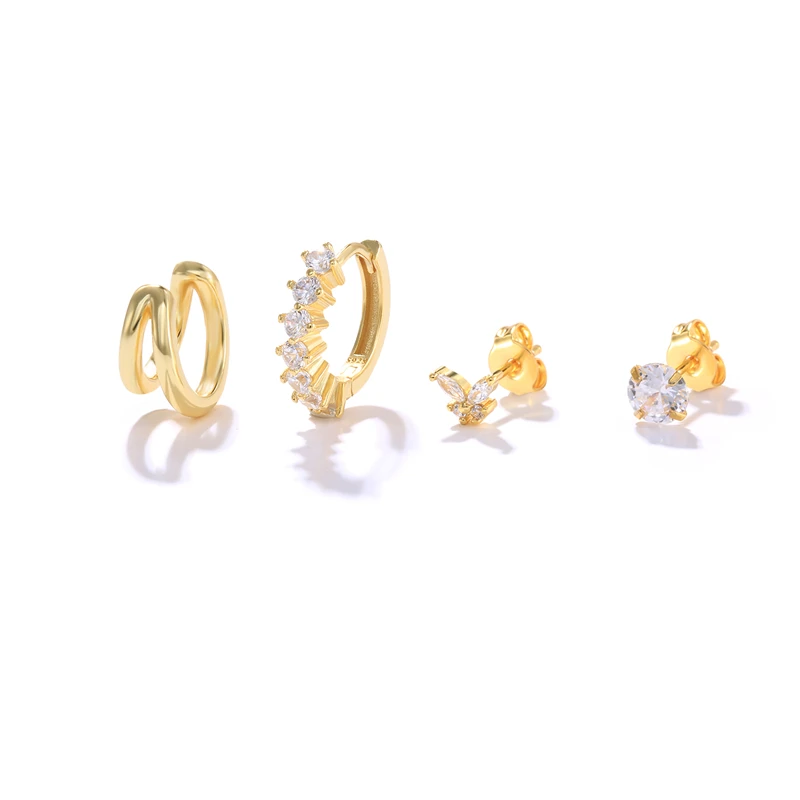 Серьги-гвоздики женские с фианитом, под золото 18 К