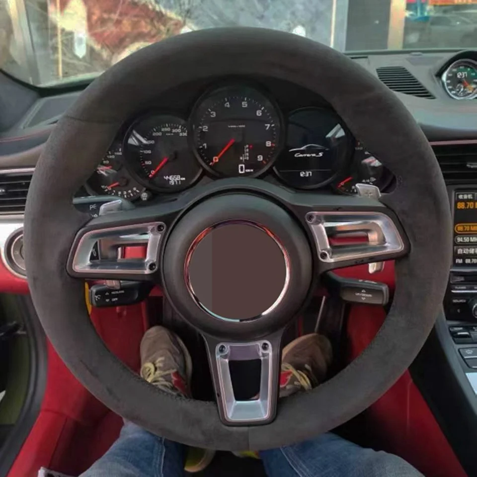 Сшитая вручную мягкая черная замша чехол рулевого колеса автомобиля...