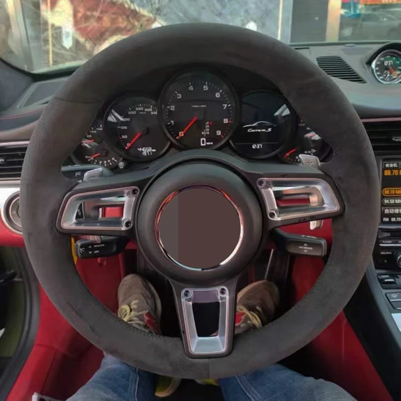 Прошитые вручную автомобильные аксессуары из черной натуральной замши для Porsche Macan Cayenne 2015-2016