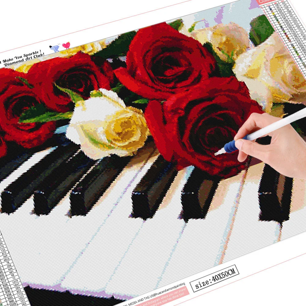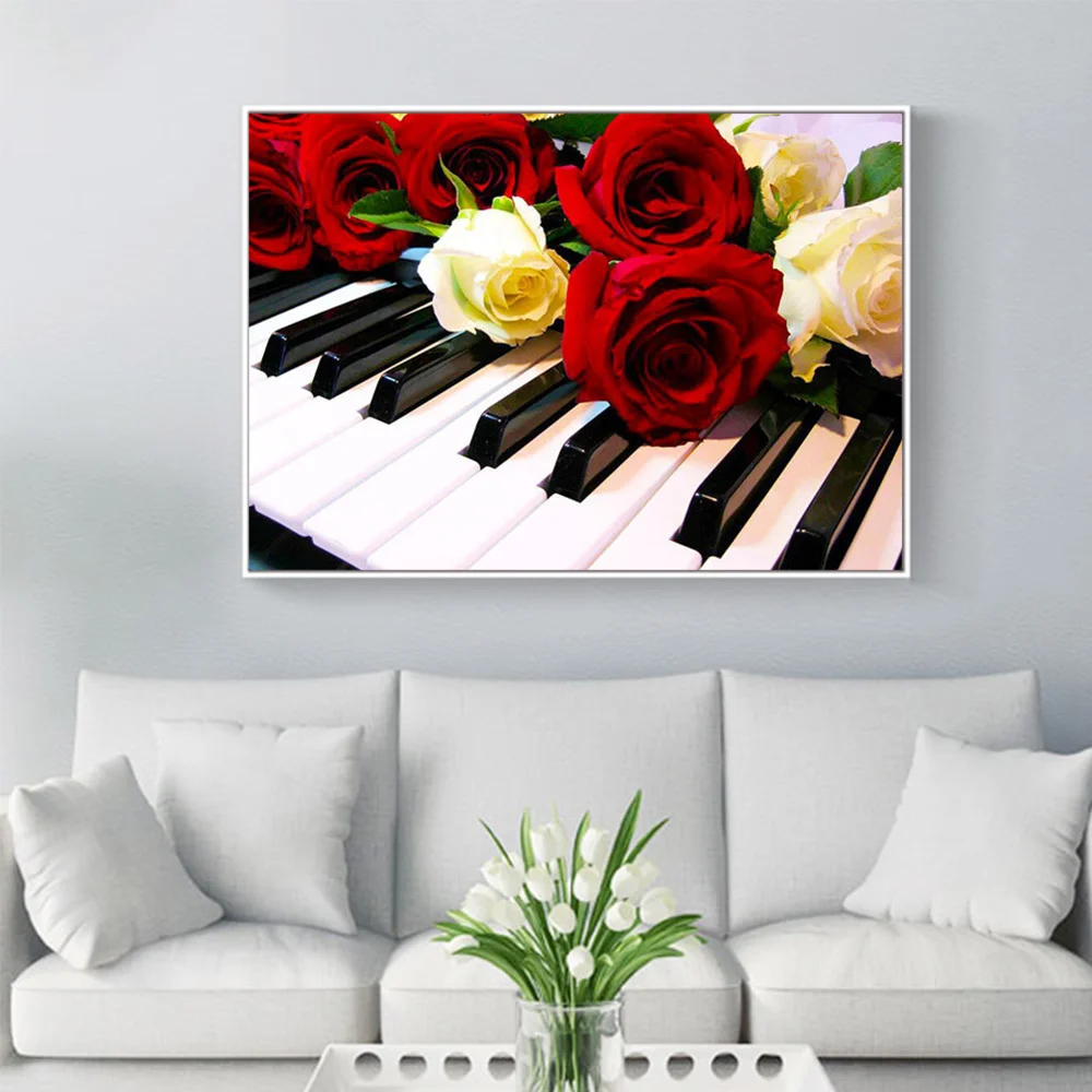 HUACAN 5D алмазная Вышивка Роза Алмазная картина пианино для взрослых цветок Алмазная мозаика крестиком наборы для украшения