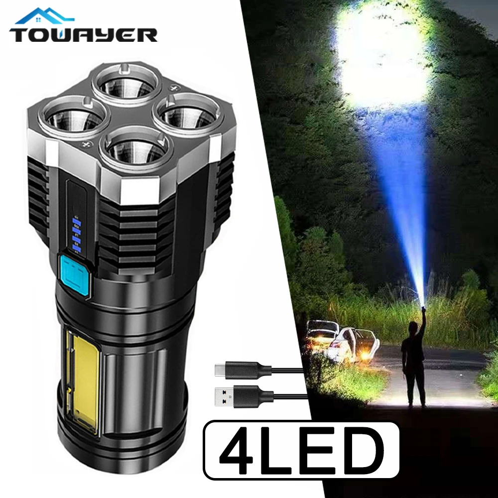 4-ядерный мощный яркий фонасветильник, перезаряжаемый наружный Мног...