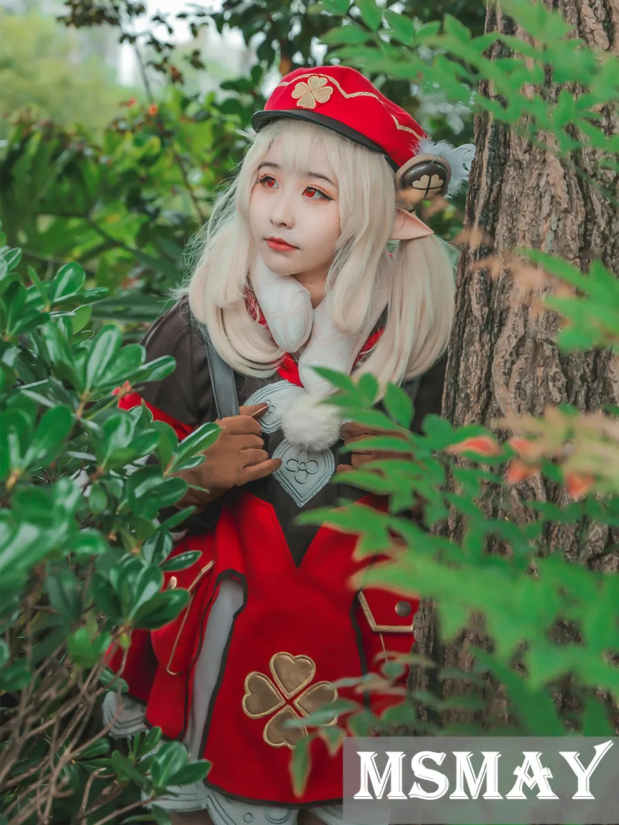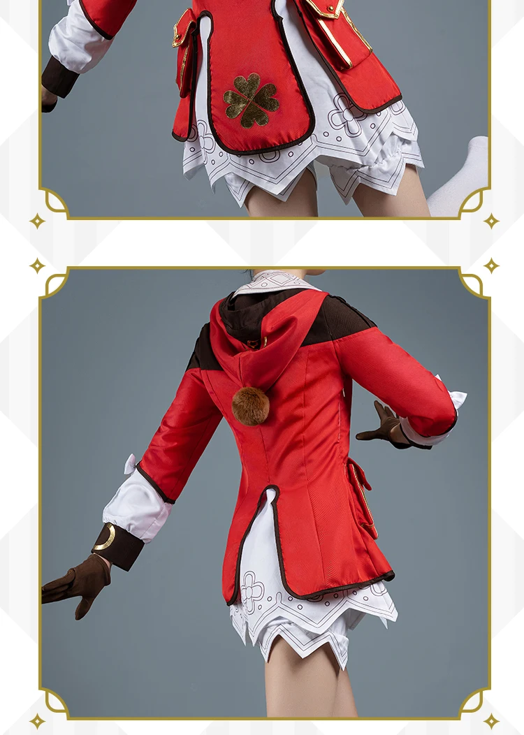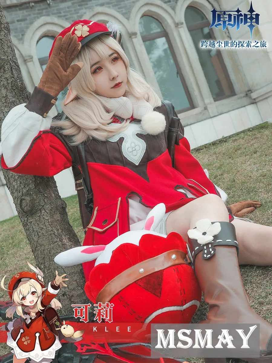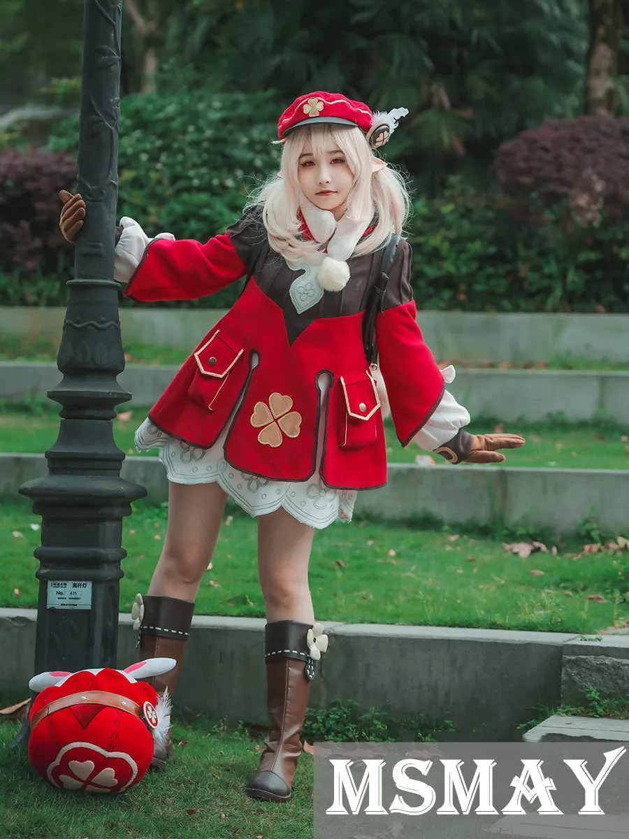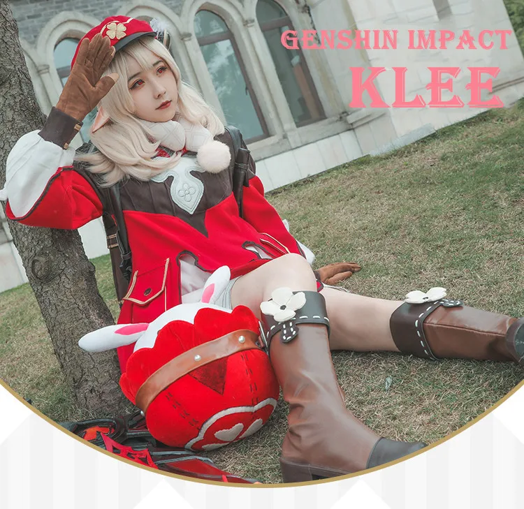 Игра Genshin Impact Klee Косплей костюмы Красный Косплей Хэллоуин Косплей костюмы с шапкой и перчаткой Униформа Cos Полный комплект