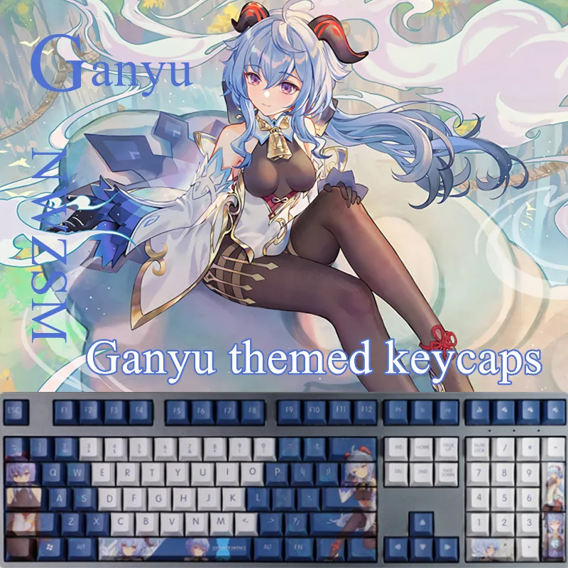 Игровая клавиатура Genshin Impact, украшение для клавиатуры, игровой персонаж Ganyu, колпачки для клавиш Otaku, коллекционные подарки, Рождественский подарок