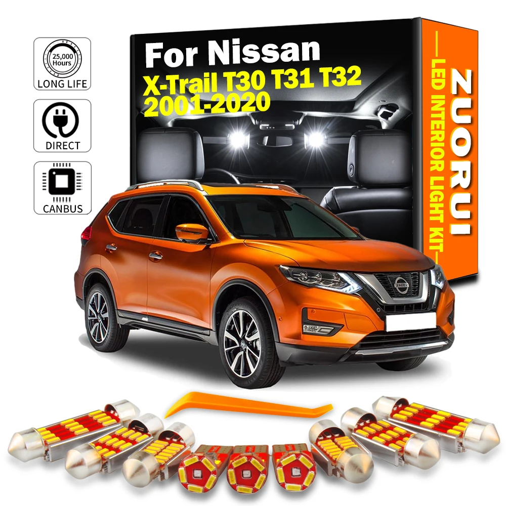 Автомобильные светодиодсветодиодный лампы ZUORUI Canbus для салона Nissan X-Trail, X Trail, T30, T31, T32, 2001-2018 светодиодный ные лампы без ошибок