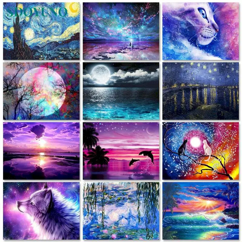 Квадратнаякруглая алмазная живопись SDOYUNO, пейзаж 5D, наборы для ...