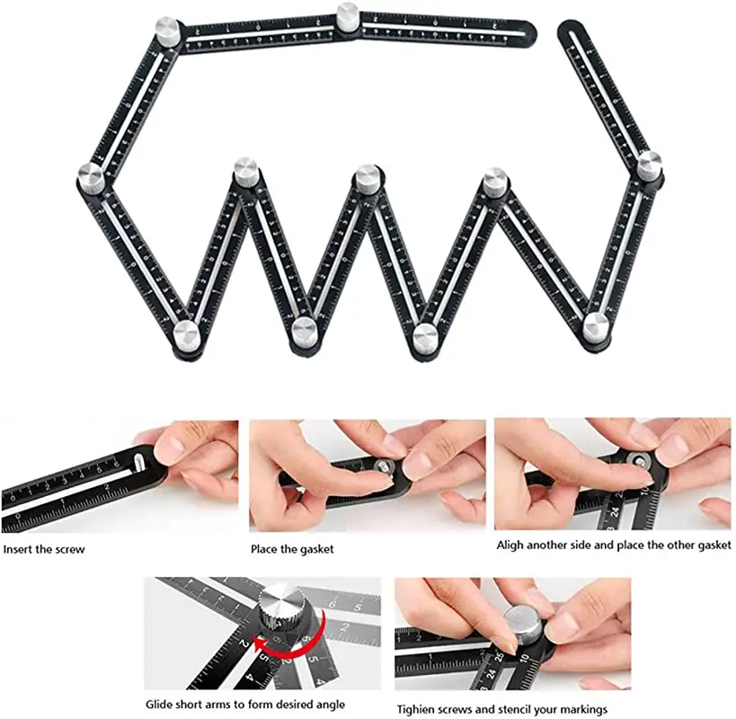 -Со складными 6 Сторонами, этот инструмент для измерения углов плитки является гибким, скользящим и съемным.
