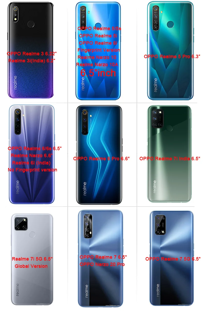 OPPO Realme 2 PRO 6,3"OPPO Realme 3 6,22 "Realme 3i (Индия)OPPO Realme 3 Pro 6,3"OPPO Realme 5/Realme 5s/Realme 5i/Realme 6i (версия отпечатка пальца) 6,5"OPPO Realme 5 Pro 6,3"OPPO Realme 6/Realme 6S/Realme 6i (Индия) без отпечатков пальцев Версия 6,5OPPO Realme 6 Pro 6,6"OPPO Realme 7i RMX2103 6,5"OPPO Realme 7i Global RMX2193 6,5"OPPO Realme 7 6,5"OPPO Realme 7 5G 6,5"OPPO Realme 7 Pro 6,4"OPPO Realme 8 6,4"OPPO Realme 8 5G 6,5"OPPO Realme 8 Pro 6,4"