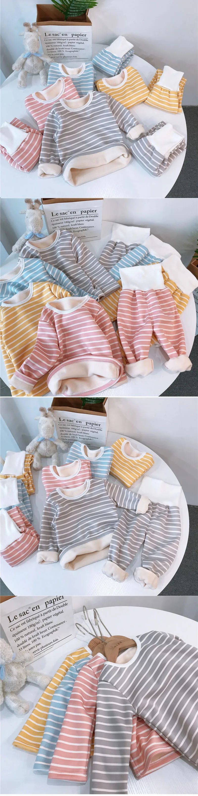 Флисовое термобелье для детей 1-3 лет, Детский костюм в полоску на осень и зиму