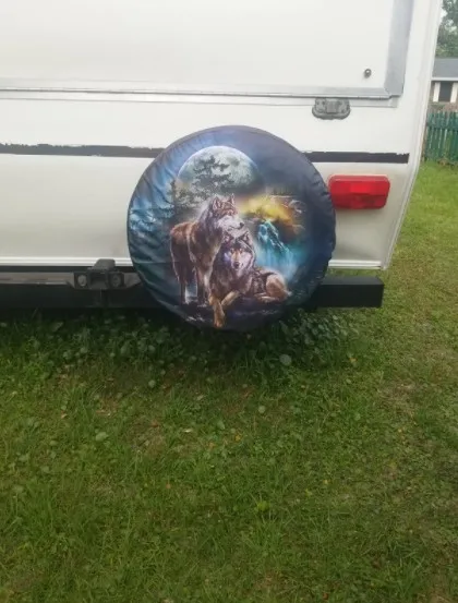 Черный 3D чехол волка для запасных шин, водонепроницаемый пыленепроницаемый чехол для колес от солнца для джипа, прицепа, RV, внедорожника, автомобиля, покрышка с аниме