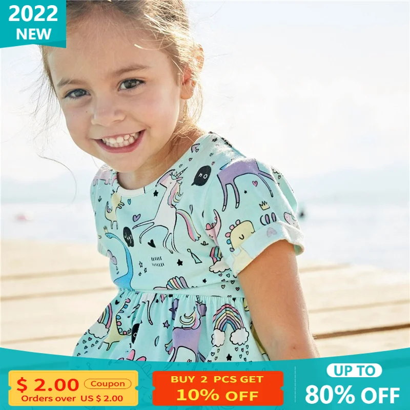 Летние платья для девочек с единорогом, детское платье с мультяшным...