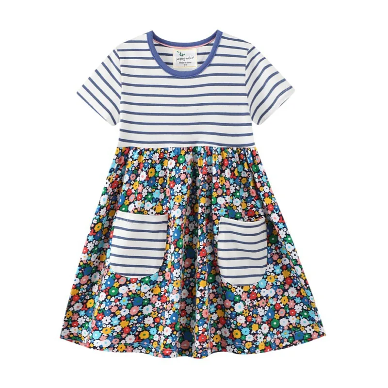 Детское летнее платье с карманами, цветочным принтом и карманами