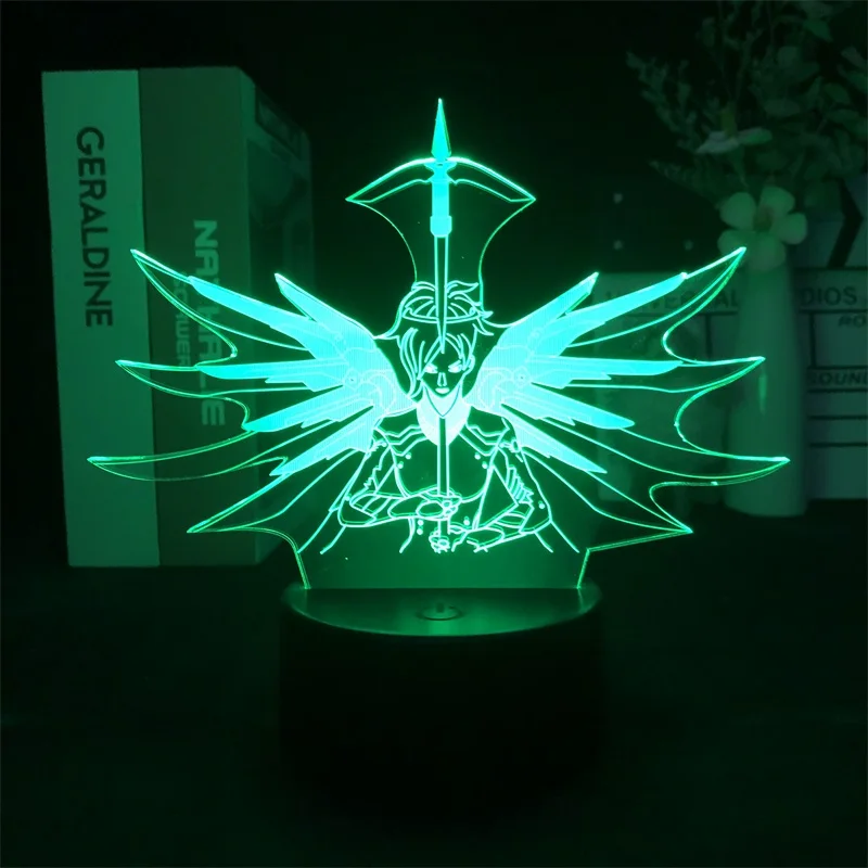 3D ночник Overwatch Мерси ангела Циглер игра для спальни Декор милый День рождения цвет подарок светодиодный светильник манга ребенок прекрасный подарок