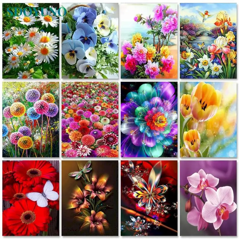 Алмазная живопись SDOYUNO 5D сделай сам, картина с цветами, полная выкладка из квадратныхкруглых страз, мозаика ручной работы, домашний декор, настенное искусство