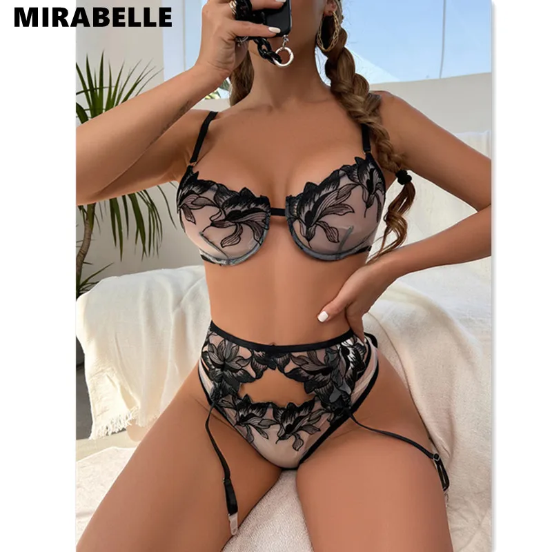 MIRABELLE модное нижнее белье сексуальные кружевные прозрачные эротические костюмы, 3 предмета, интимное нижнее белье, бюстгальтер, экзотические комплекты, комплекты для ухода за кожей