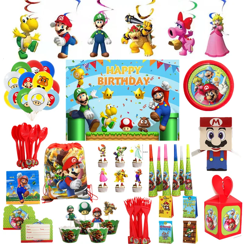 Тема "Супер Марио" Декорации для дня рождения тарелки для салфеток чашки воздушные Шары Баннер одноразовая посуда набор детских принадлежностей для душа