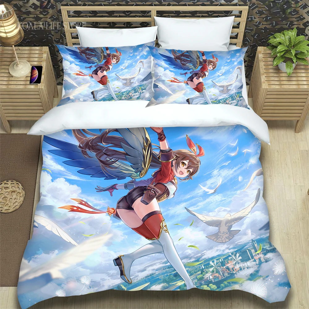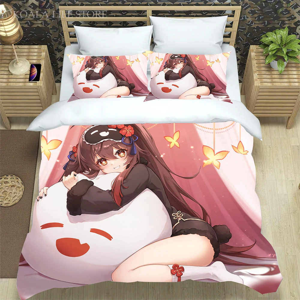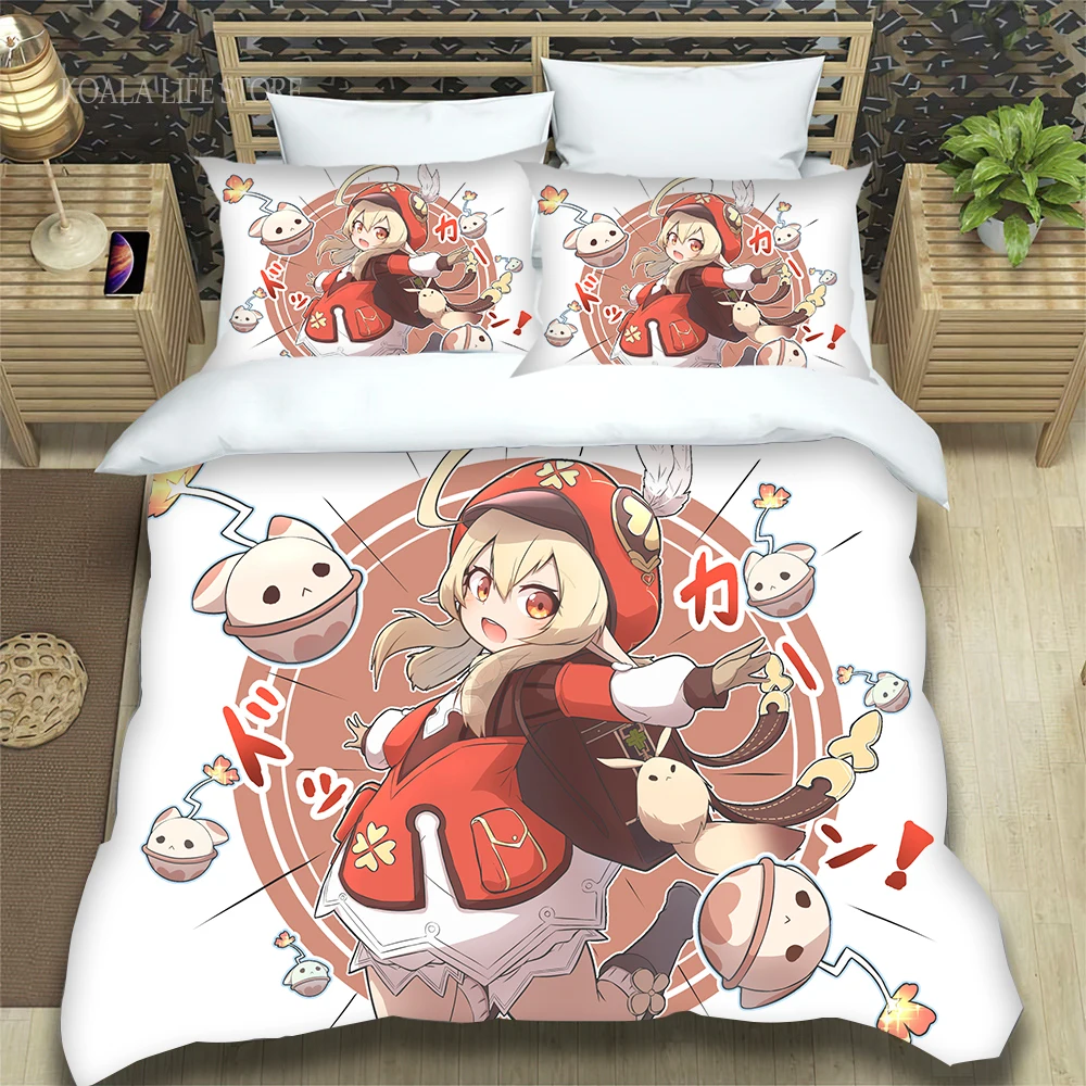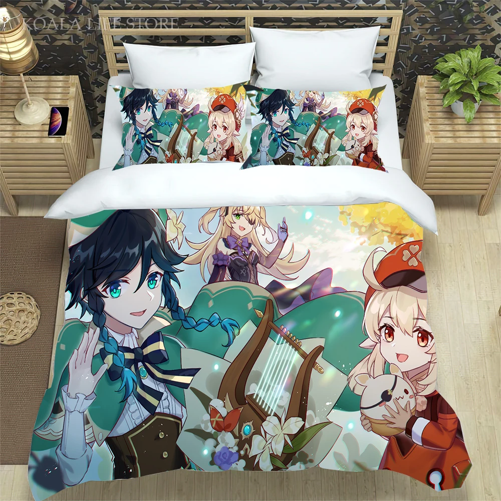 Новое поступление Аниме пододеяльник Genshin ударное покрывало для детской спальни Комплект постельного белья удобный мягкий домашний кавайный Комплект постельного белья