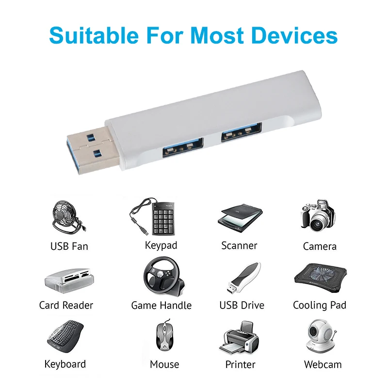 3-портовый концентратор USB 3,0 2,0 просто помогает подключать до 3 usb-устройств к вашему ПК или ноутбуку, например, USB флеш-накопители, мышь, клавиатура, USB наушники, колонки, И гораздо больше usb-устройств.