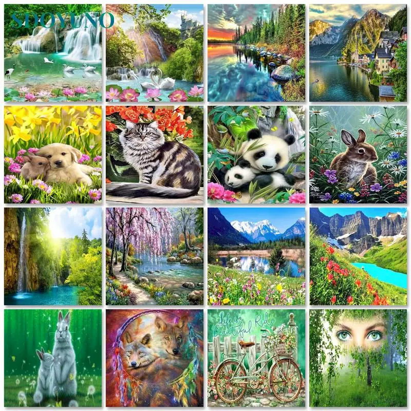 Квадратнаякруглая алмазная живопись SDOYUNO, пейзаж 5D, наборы для ...