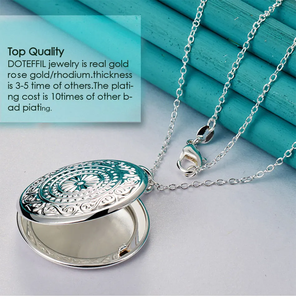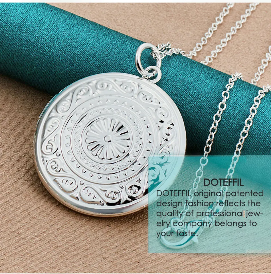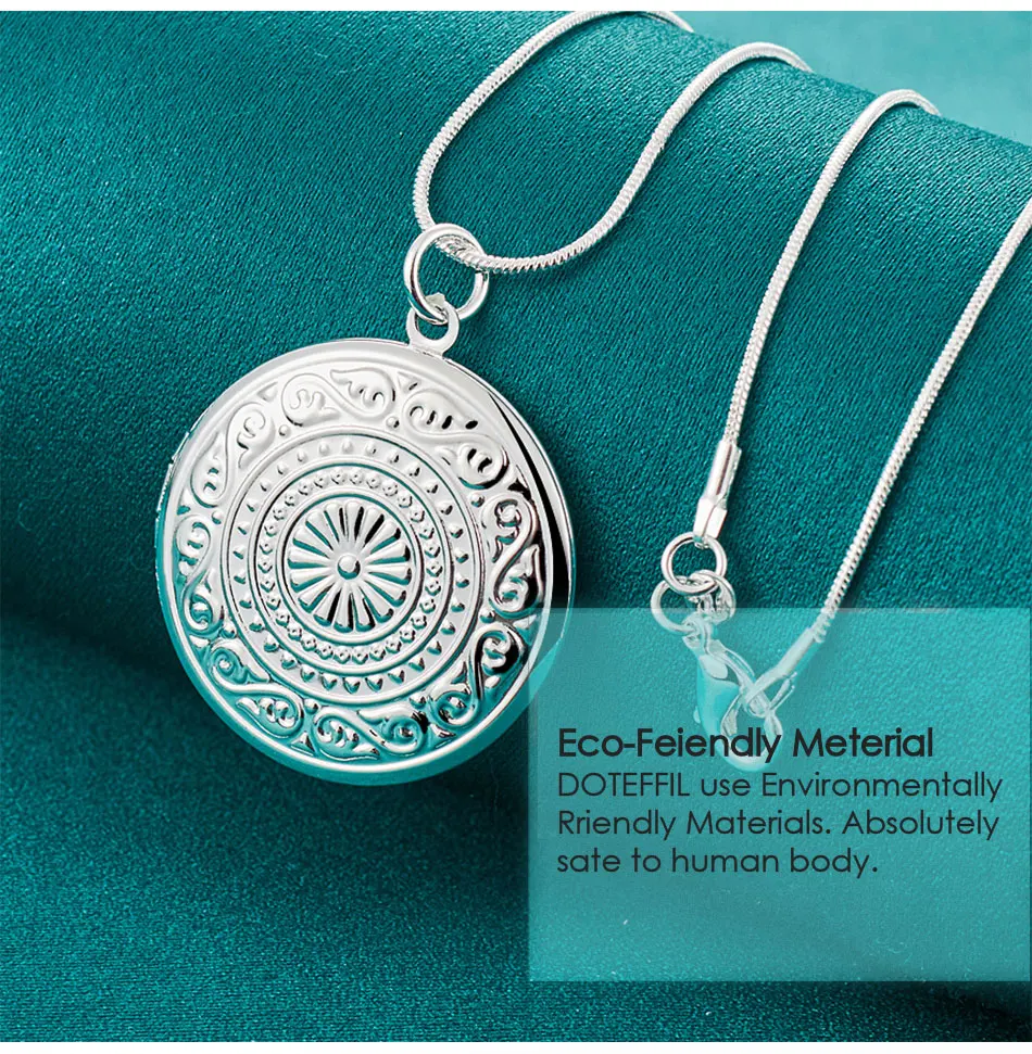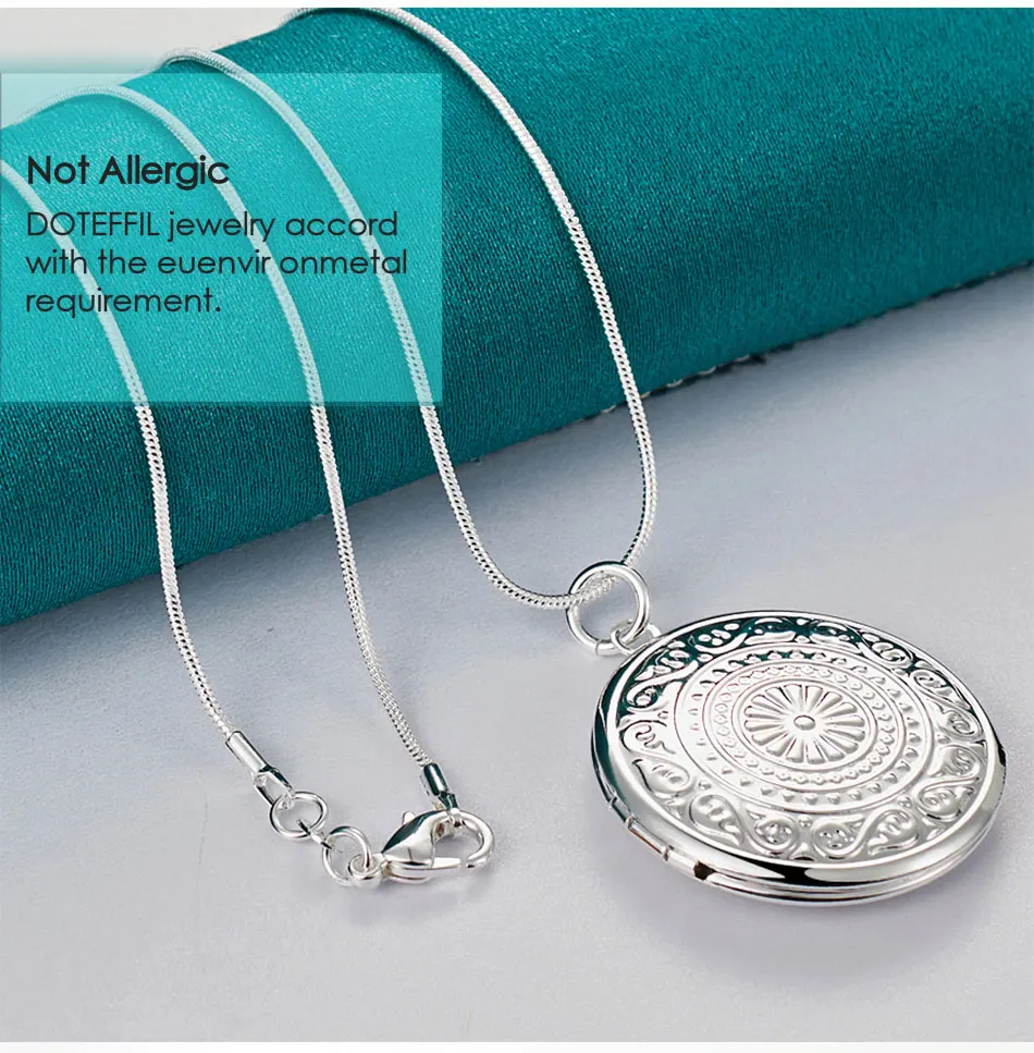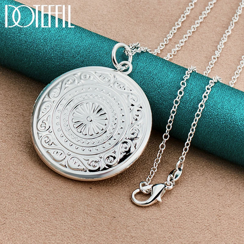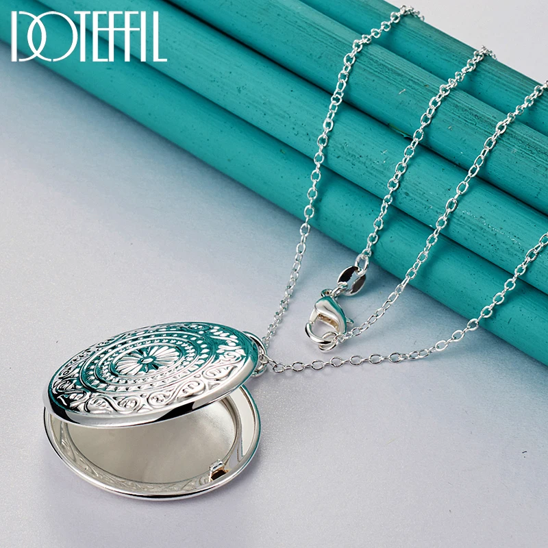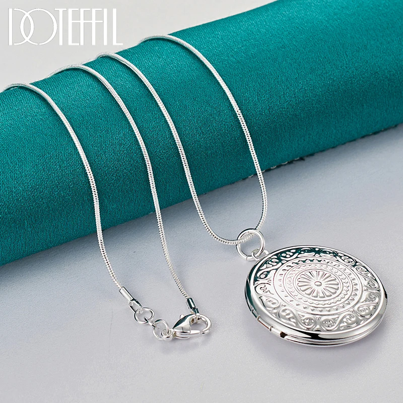 Ожерелье DOTEFFIL из стерлингового серебра 925 пробы с круглой фоторамкой, цепочка со змеиным плетением для женщин и мужчин, модные ювелирные украшения для свадебной вечеринки