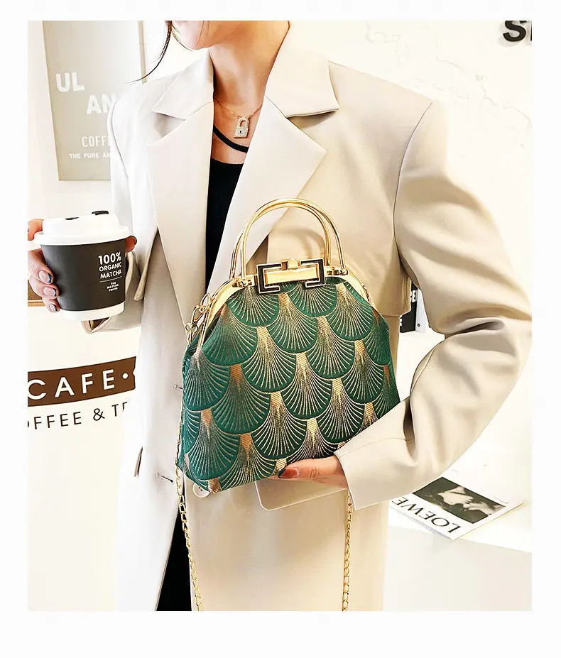 Новейшая винтажная зеленая модная женская сумка в японском стиле, шикарные женские сумки, сумка-тоут с замком, женские сумочки, кошельки, ремешок на цепочке 120 см