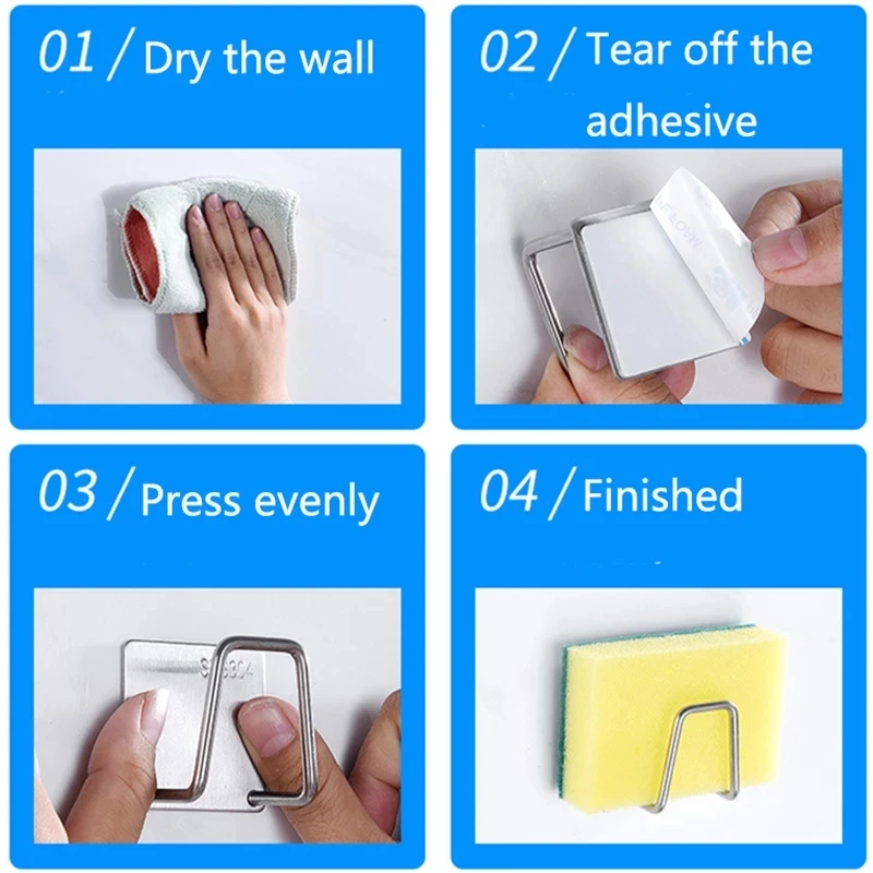 -Самоклеящаяся губка для рамы, без гвоздей и без сверления-Прочный материал из нержавеющей стали, водонепроницаемый, влагостойкий, устойчивый к коррозии, износостойкий и прочный.-Сильная несущая способность, до 10 кг, не легко деформируется.-U-образный дизайн, стабильное хранение без падения