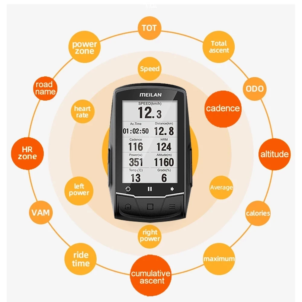 Беспроводной Велосипедный компьютер Meilan M1, Bluetooth спидометр, велосипедный велокомпьютер Ant +, велокомпьютер с измерением частоты вращения педалей, Strava, GPS-навигация, велосипедный одометр