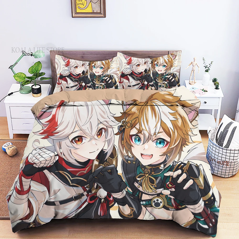 Комплект постельного белья Genshin Impact с 3D принтом для детей, пододеяльник, покрывало на весну и зиму, односпальный Комплект постельного белья большого размера (без простыней)