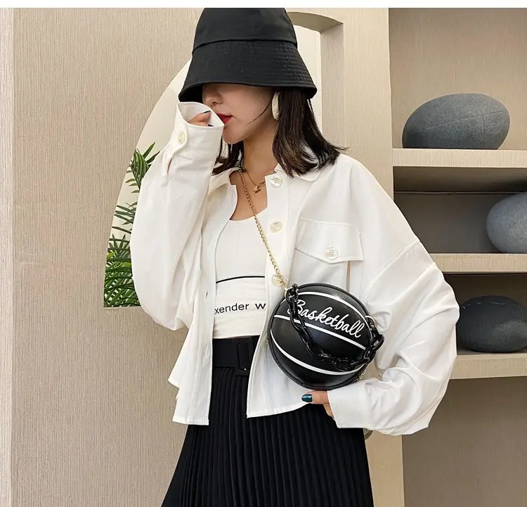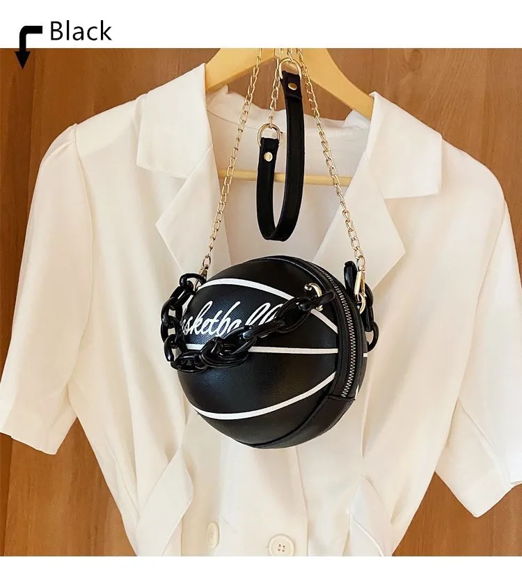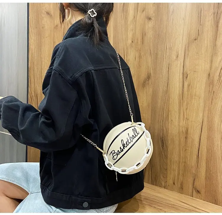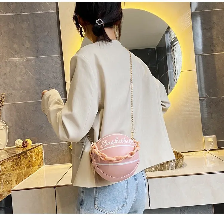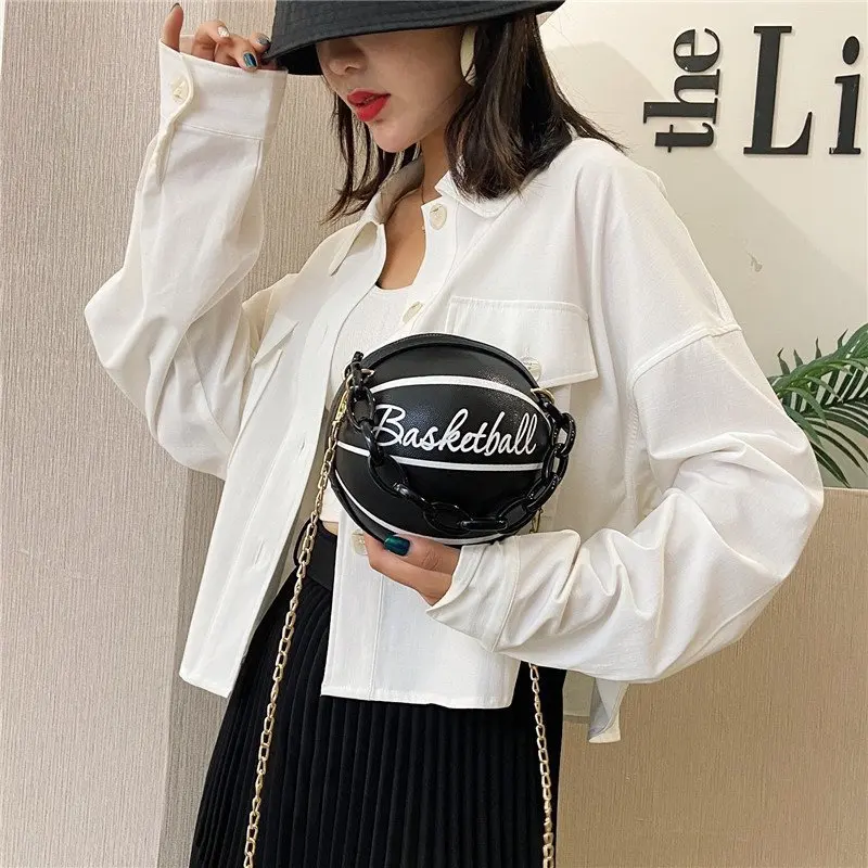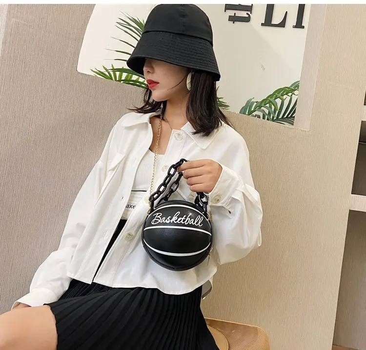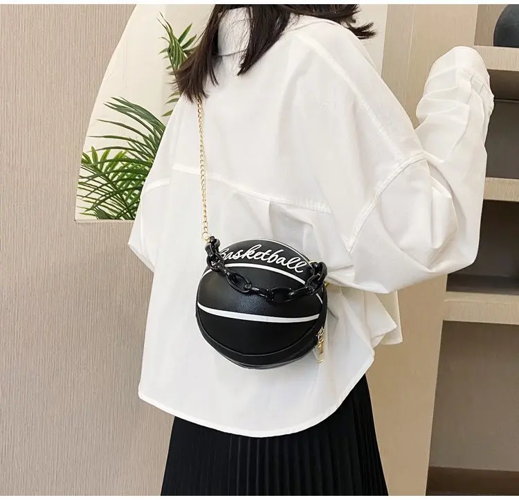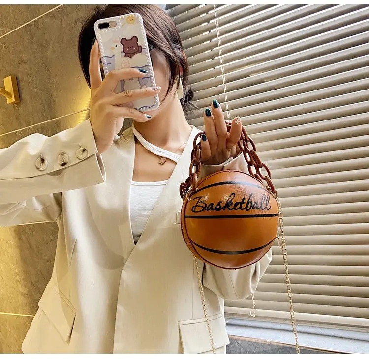 Женская сумка, баскетбольные круглые сумки через плечо для женщин, повседневные сумки-тоуты на цепочке и молнии, кошелек, сумки-мессенджеры через плечо из искусственной кожи