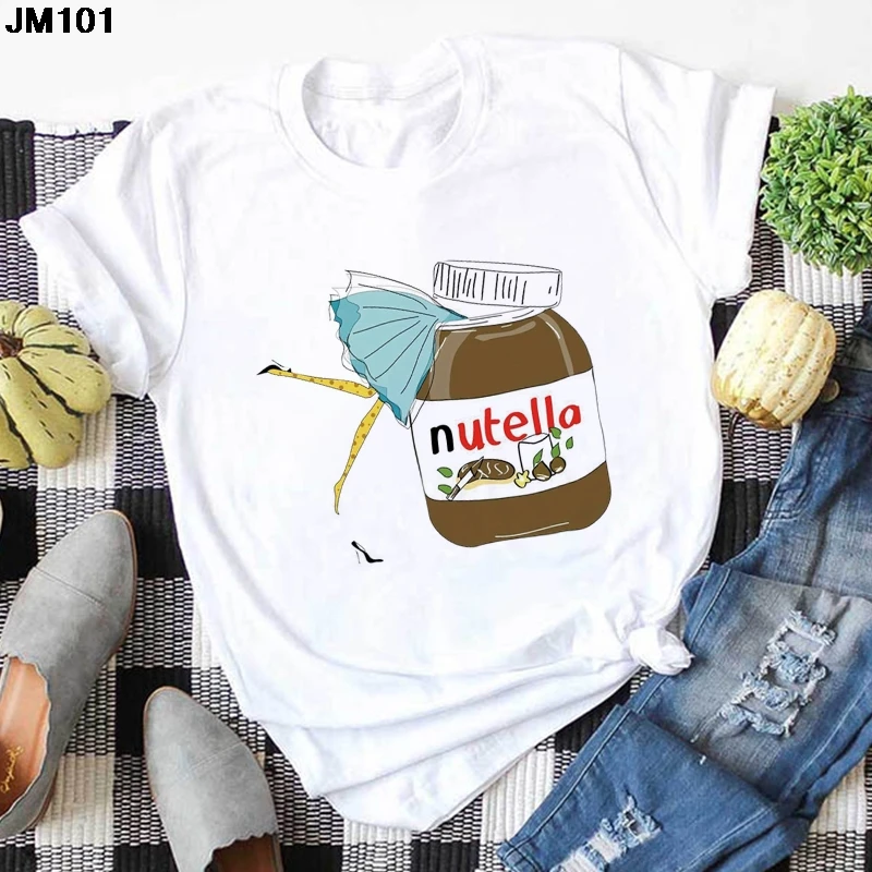 Новая летняя женская футболка с милым принтом Nutella, женская футб...