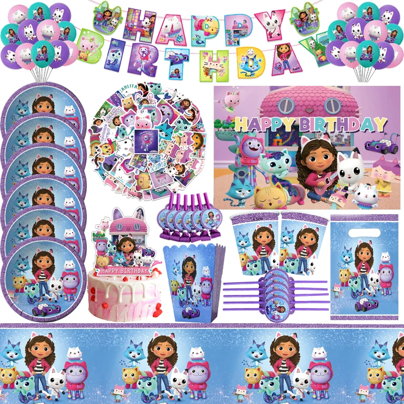 Мультяшный кукольный домик Gabby, украшение на день рождения с кошками, воздушный шар, одноразовая посуда для детей, кукольный домик, фигурки, товары Вечерние