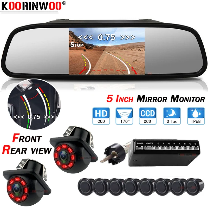 Автомобильный парковочный датчик Koorinwoo, HD 5 "монитор с камерой динамической траектории и датчиками для автомобилей, радар-детектор, датчик отдачи