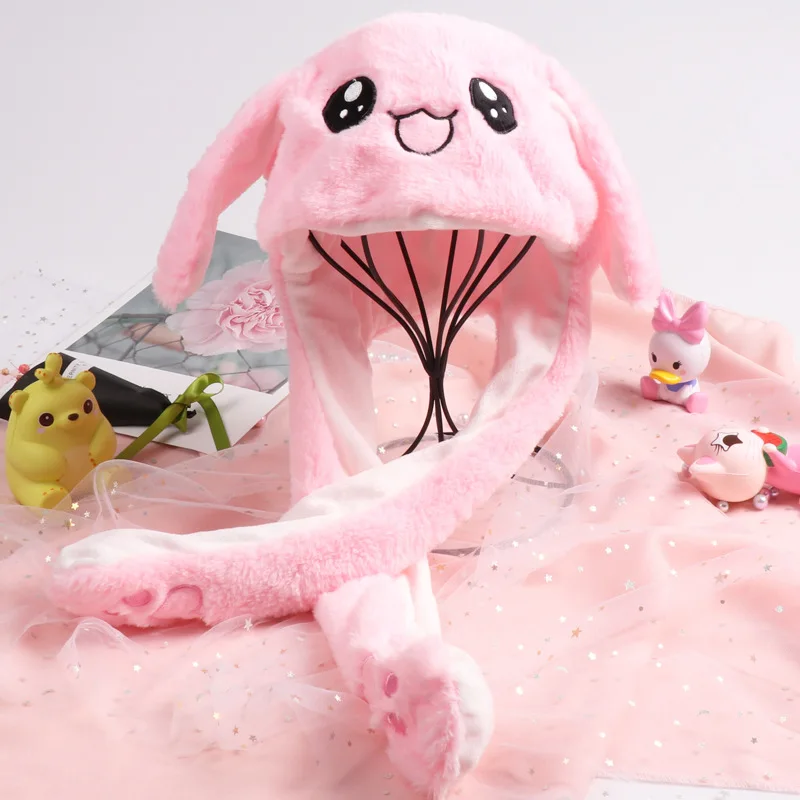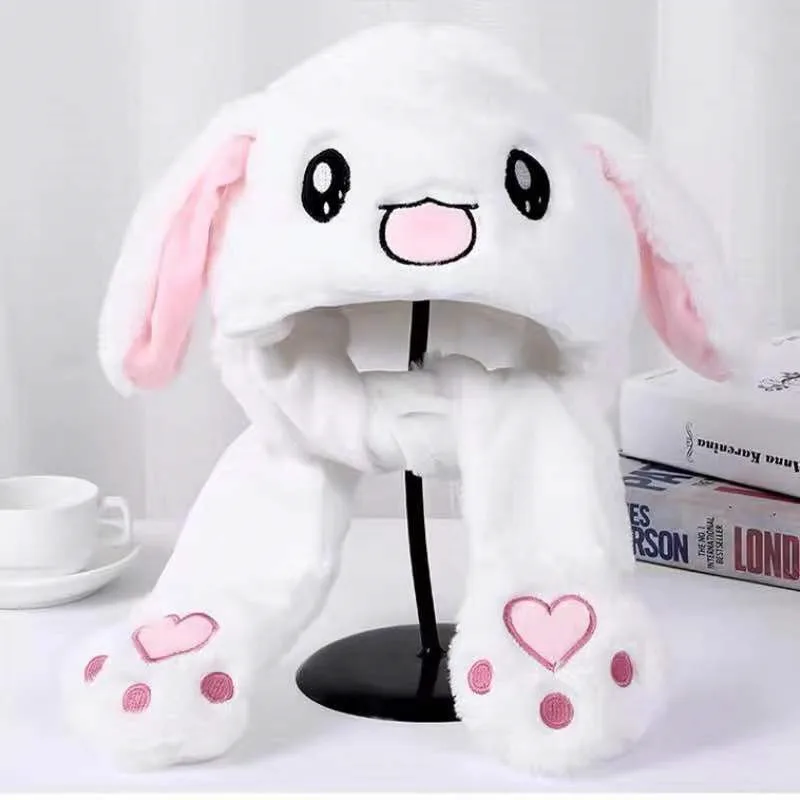 Шапка с кроликом из мультфильма для женщин и девочек, зимняя шапка с плюшевыми заячьими ушками, подвижными ушками, игрушечная шапка