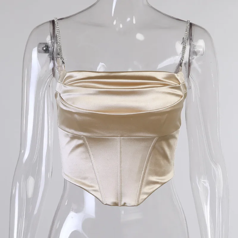 Топ женский корсет-бюстье на бретелях со стразами, пикантный одното...