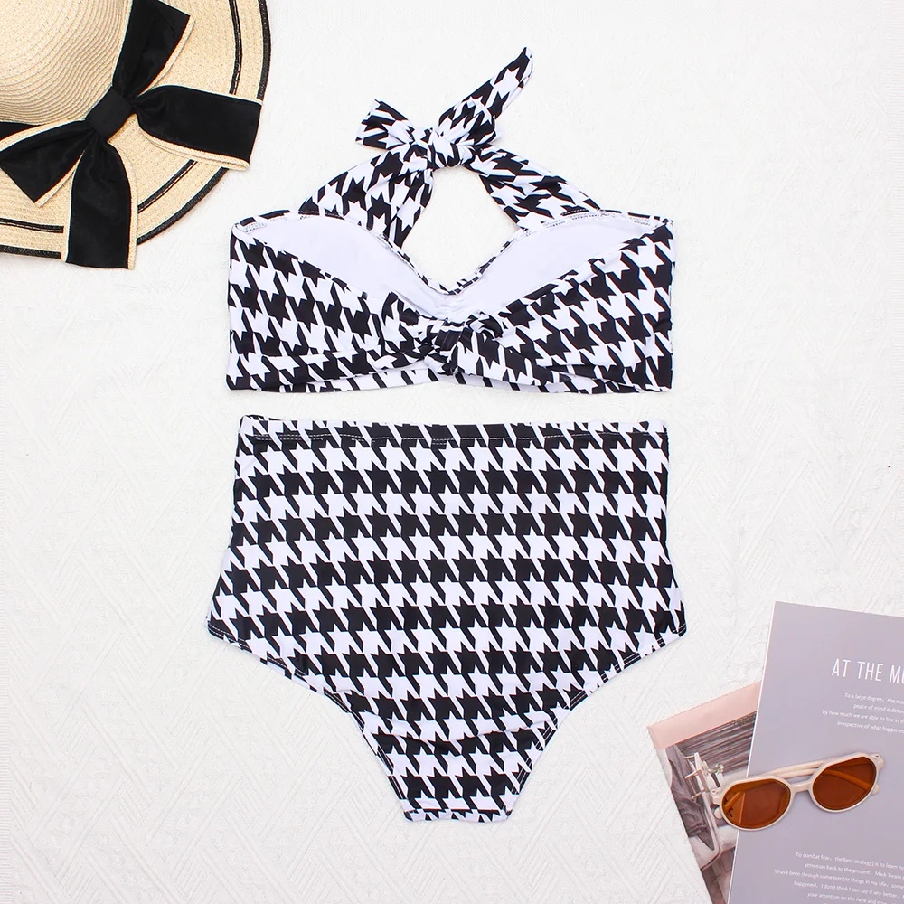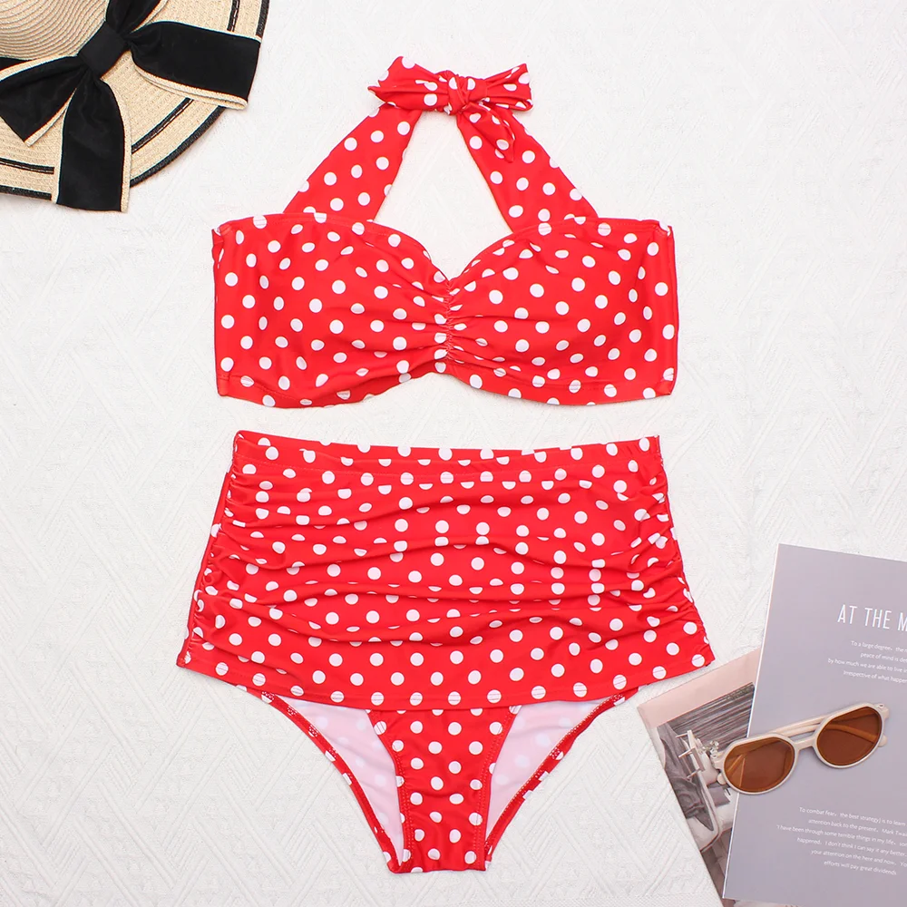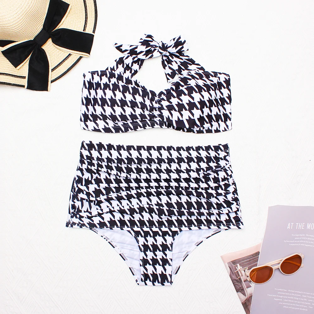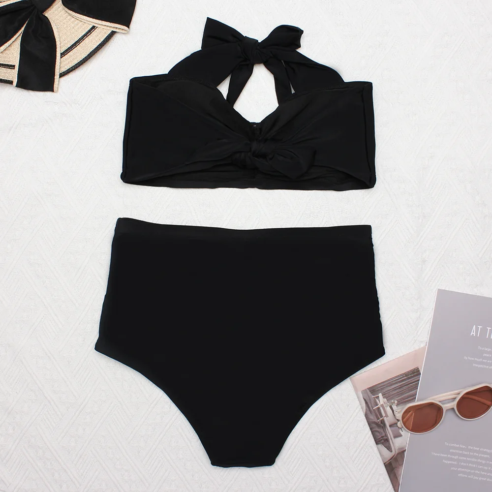 Женский купальник, купальник с высокой талией, черный бикини с лямкой на шее, пляжный купальный костюм с рюшами, женский купальный костюм из двух предметов, женское бикини 2022