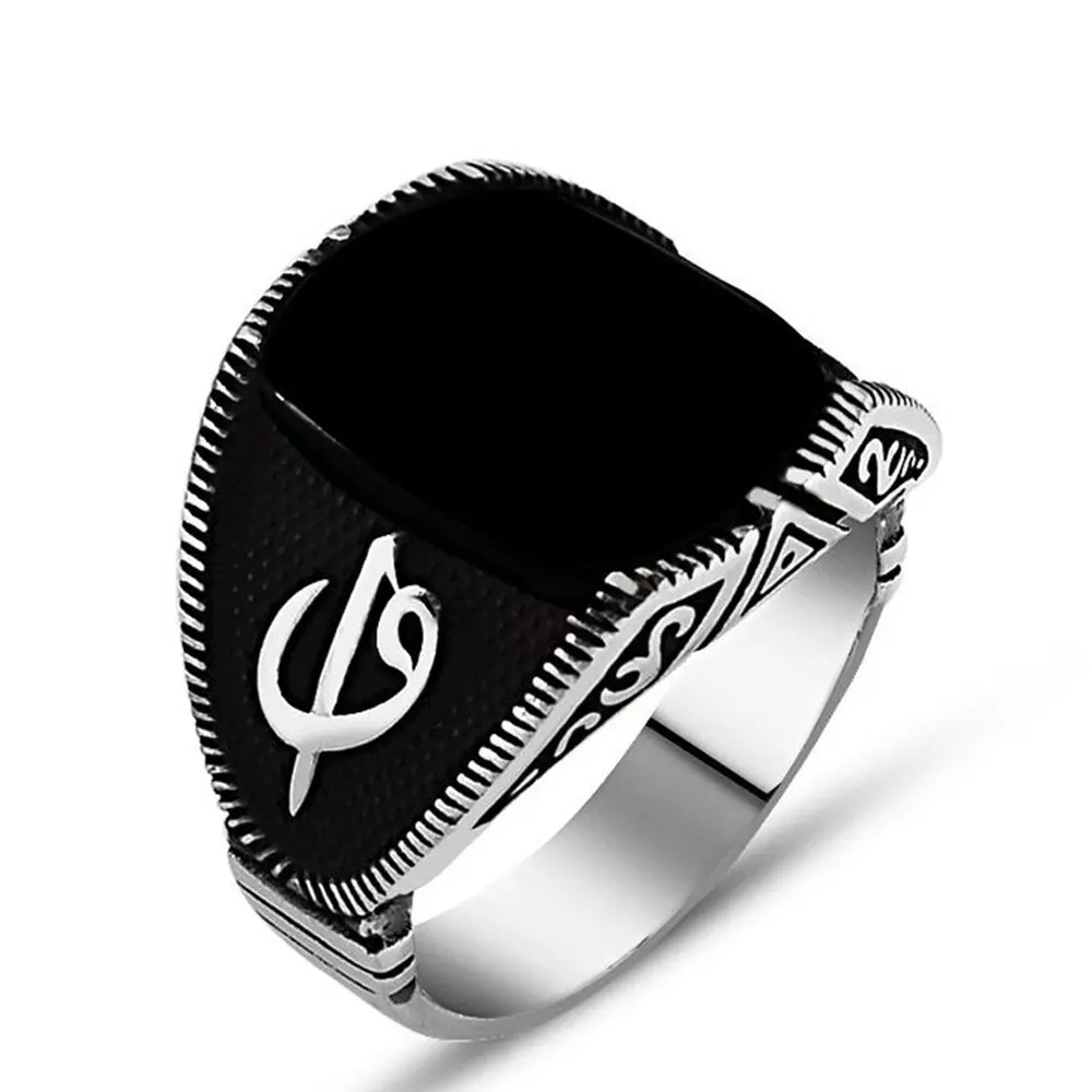 Мужское бриллиантовое серебряное кольцо, камень оникса с буквой Aleph Vav, подарочные украшения ручной работы, специальный дизайн, Сделано в Турции, модные ювелирные изделия