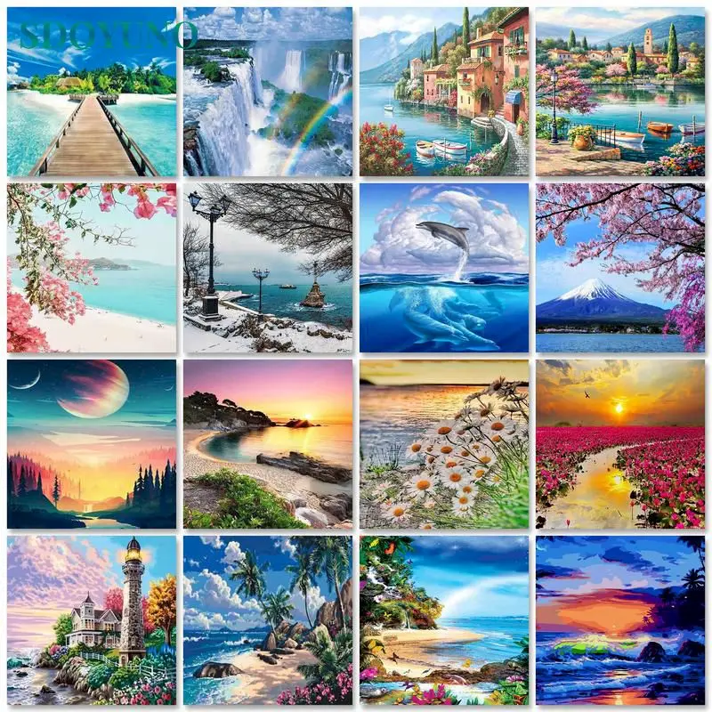 Квадратнаякруглая алмазная живопись SDOYUNO, пейзаж 5D, наборы для алмазной вышивки сделай сам, мозаика морской пейзаж, стразы, узор, домашний декор