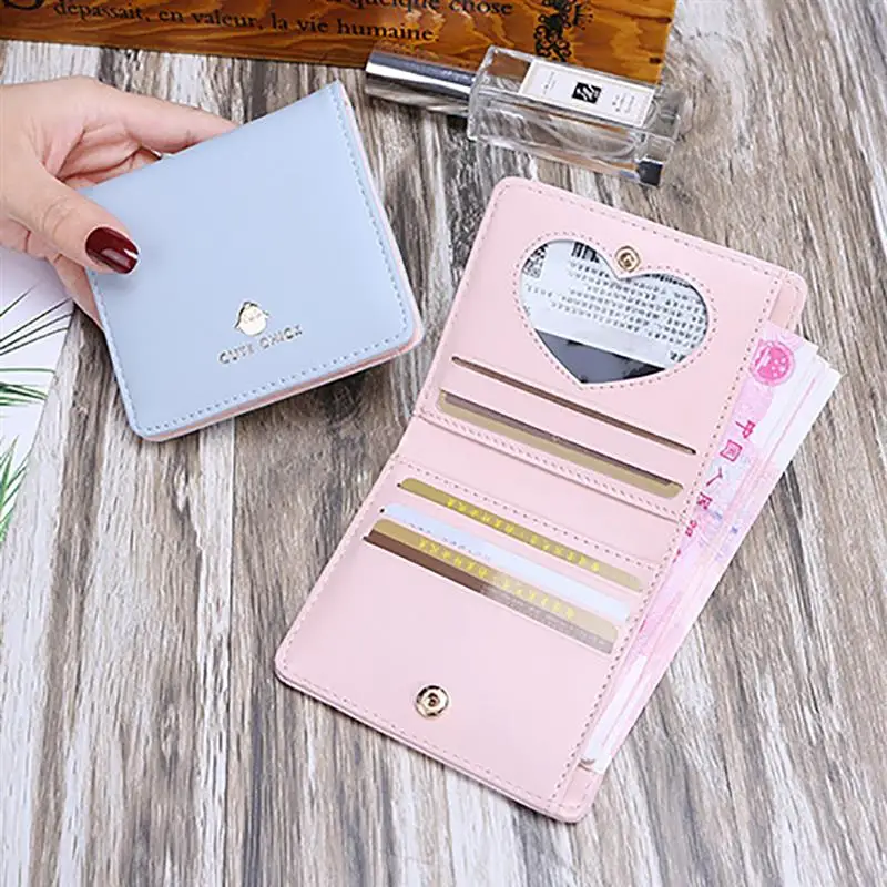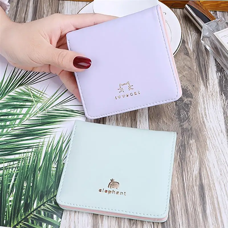 Новинка 2021, Модный женский кошелек с милым лицом кошки для кредитных карт, маленькие кожаные короткие женские кошельки и милый кошелек