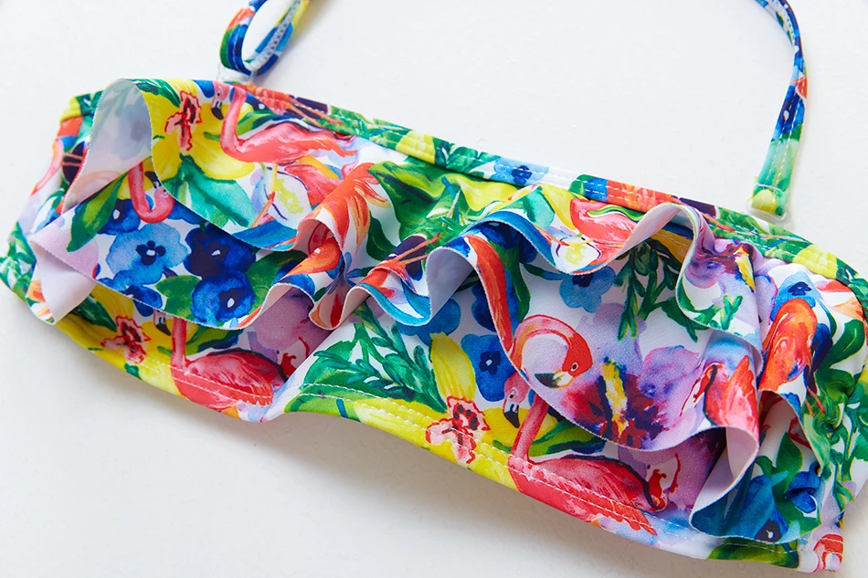 Купальник-бикини для девочек 7-16 лет, Детский комплект бикини с оборками и фламинго для девочек-подростков