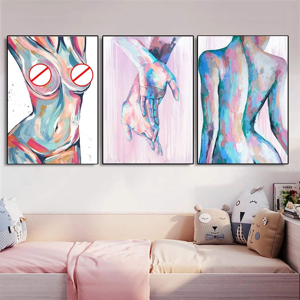 Женский обнаженный рисунок, художественная живопись на холсте, абстрактная женщина с отпечатком тела, разноцветный модный постер, картина для ванной комнаты, домашний декор