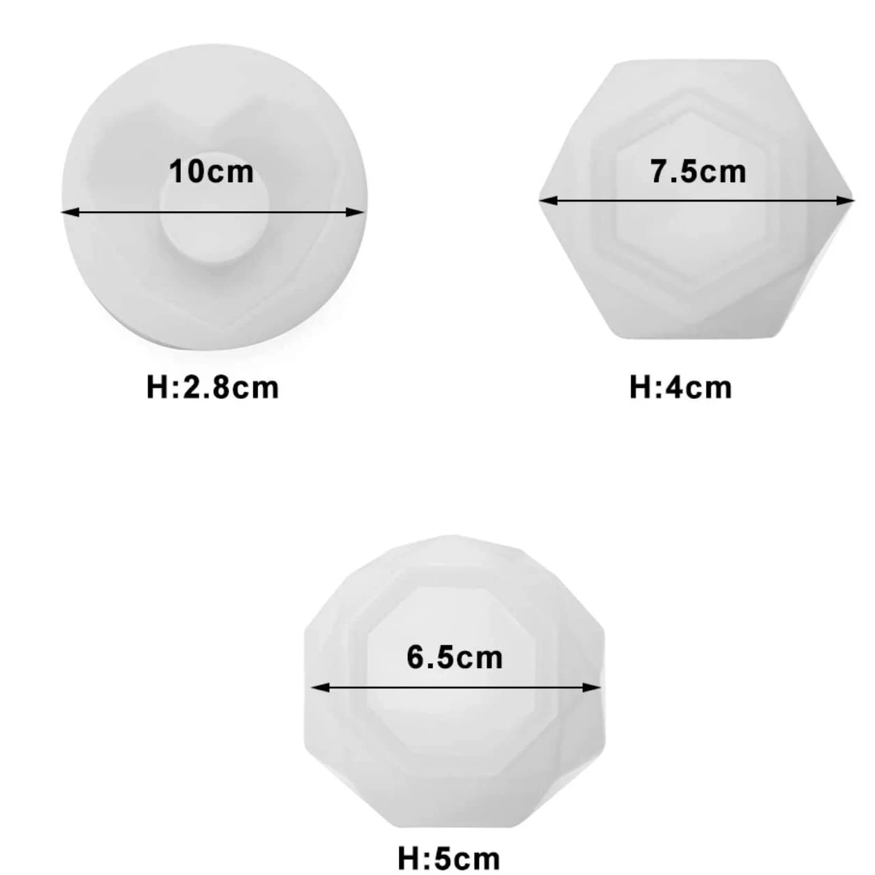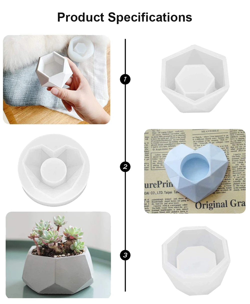 Посылка включает: 1 x 3D эпоксидная смола, форма для суккулентных растений Материал: пищевой силикон Цвет: как на картинке Размер (диаметр * высота) Сердце: 10,0*2,8 см Шестиугольная: 7,5*4,0 см Восьмиугольный: 6,5*5,0 см