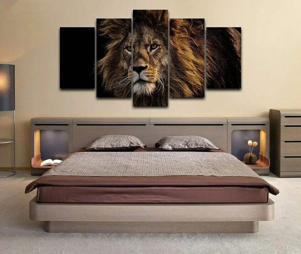 5 панельных холщовых картин с изображением Льва животных теней короля джунглей, настенный плакат, домашний декор, HD печать, 5 шт., картины для декора комнаты
