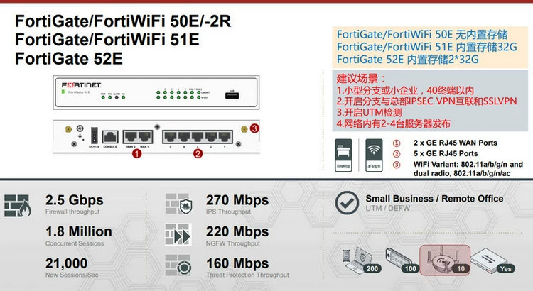 Новинка 95% года, FortiGate 50E Fortinet брандмауэр, корпоративное подразделение VPN, интерсоединение поддерживает 40 человек онлайн, FG-50E