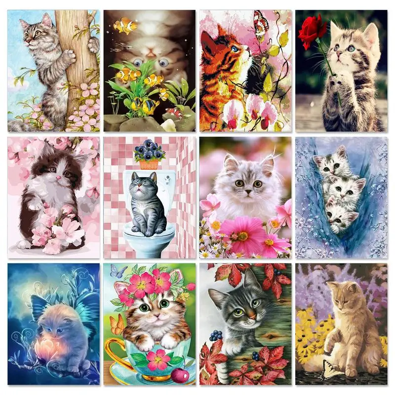 GATYZTORY Рисование по номерам на холсте с рамкой Diy Набор для взрослых кошка Рисование акриловая краска Картина маслом окрашивание по номерам