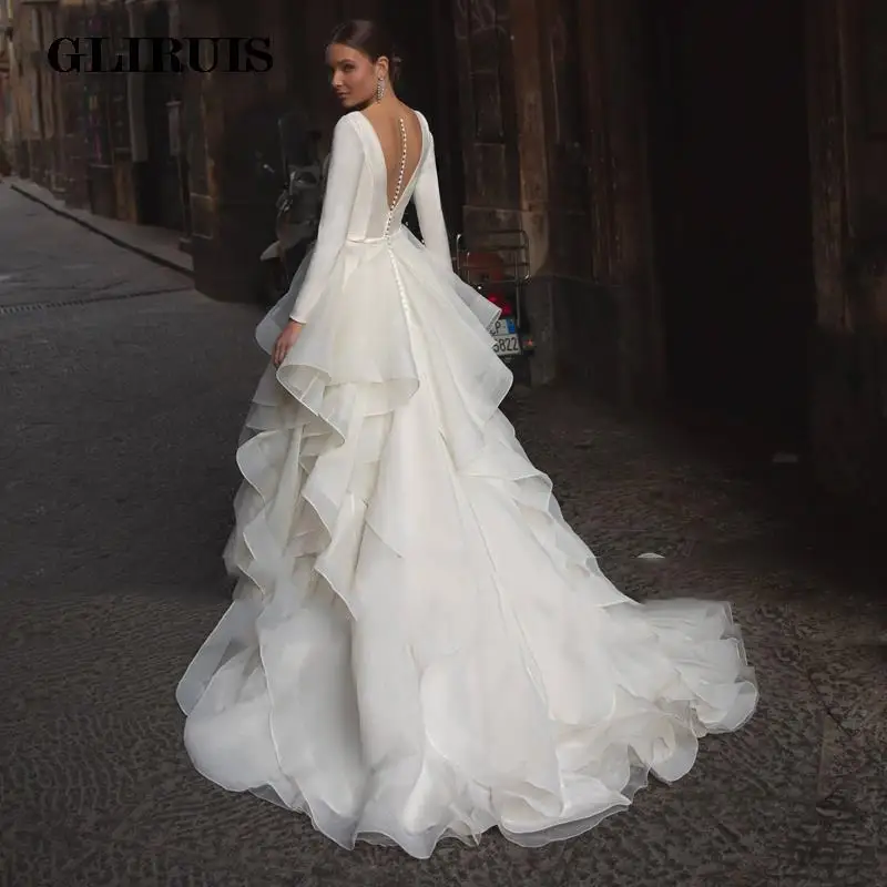 Романтическое пляжное свадебное платье Sevintage с V-образным вырезом и длинным рукавом, оборки, органза со шлейфом, женское платье для невесты