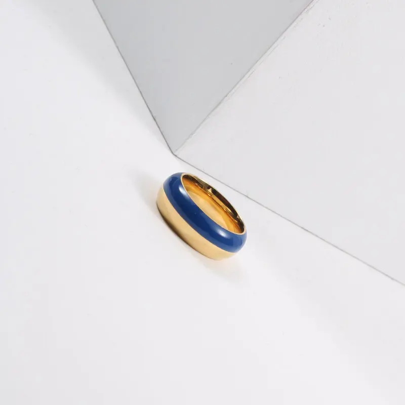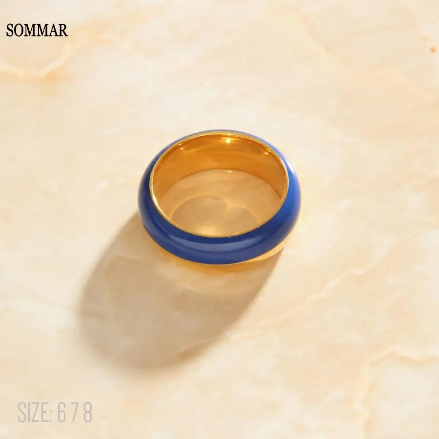 SOMMAR подарок на день рождения Золотое обручальное кольцо богини Размер 6 7 8 темно-синее двухцветное изогнутое стандартное мужское ювелирное изделие для женщин
