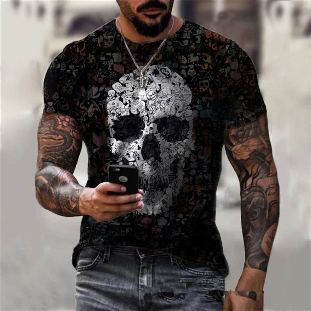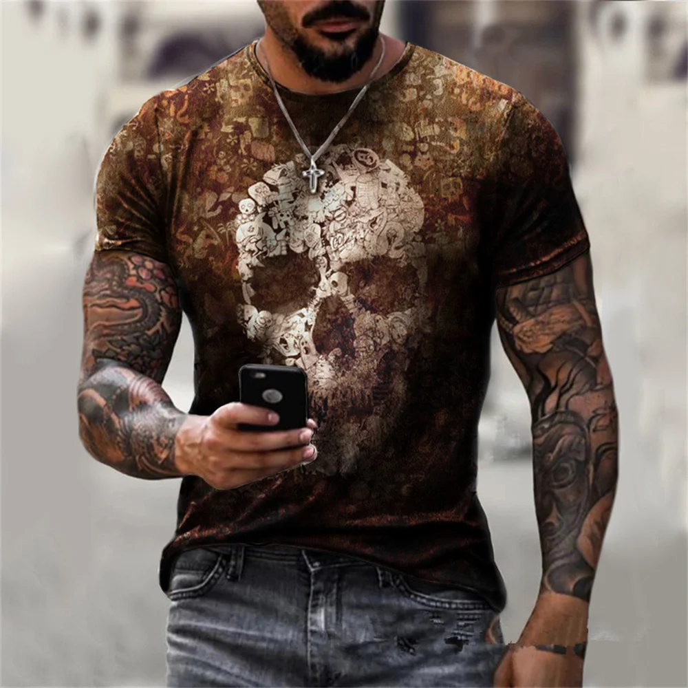 Футболка с 3D-принтом, изысканный рисунок черепа, модная уличная фу...