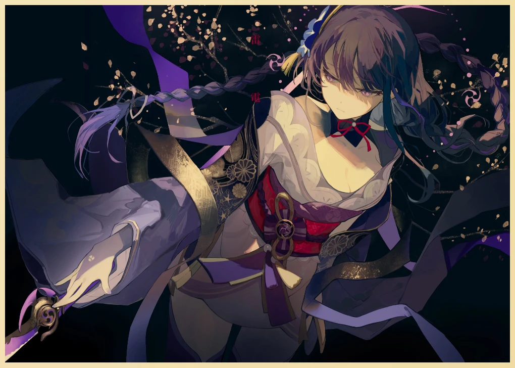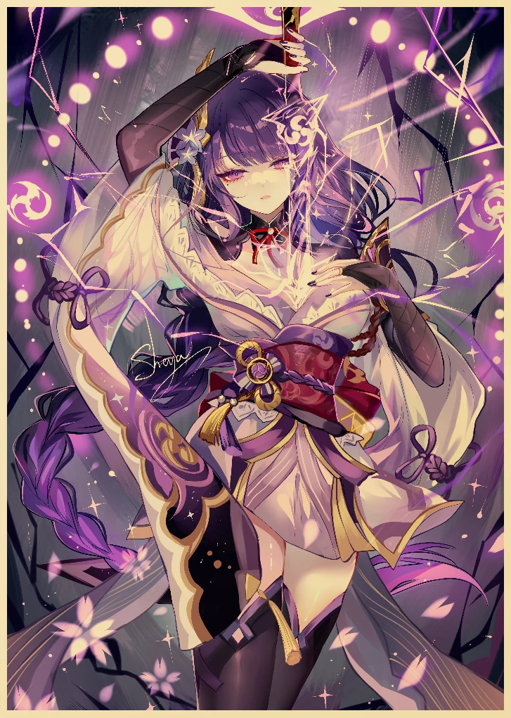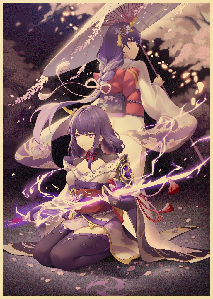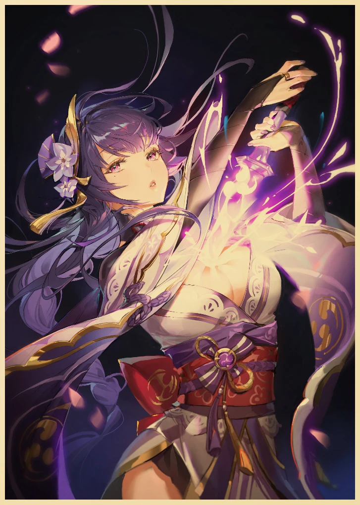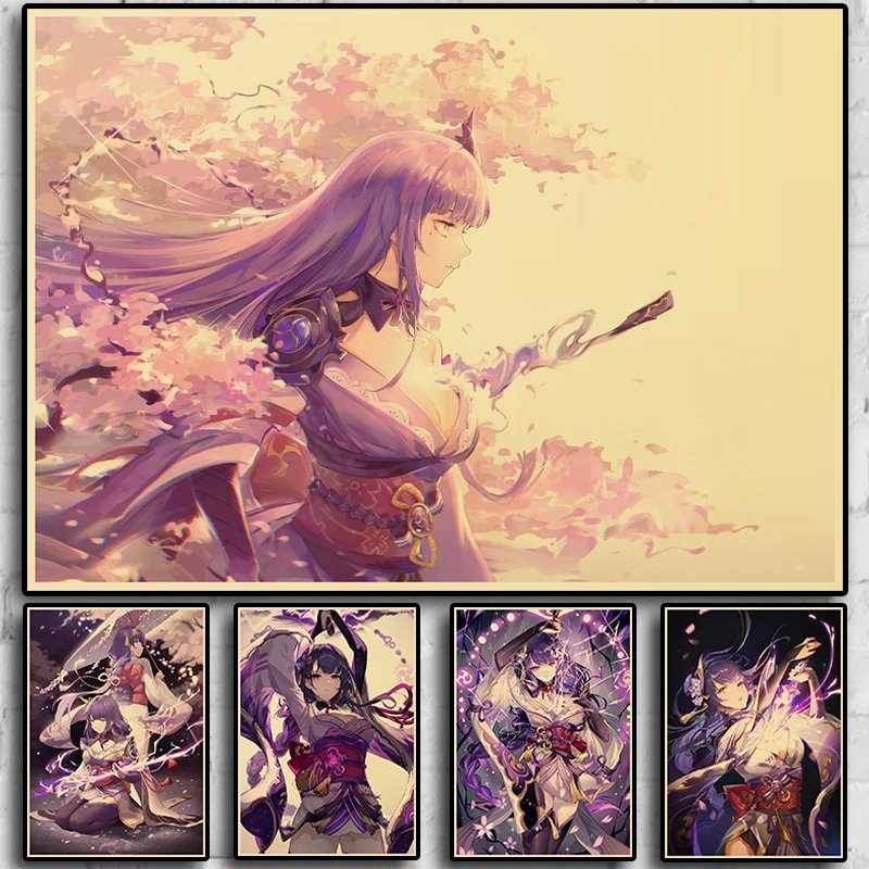 Популярная игра Genshin Impact персонаж: Raiden Shogun постер, ВИНТАЖНАЯ фотография, художественная живопись, домашний декор, наклейка на стену