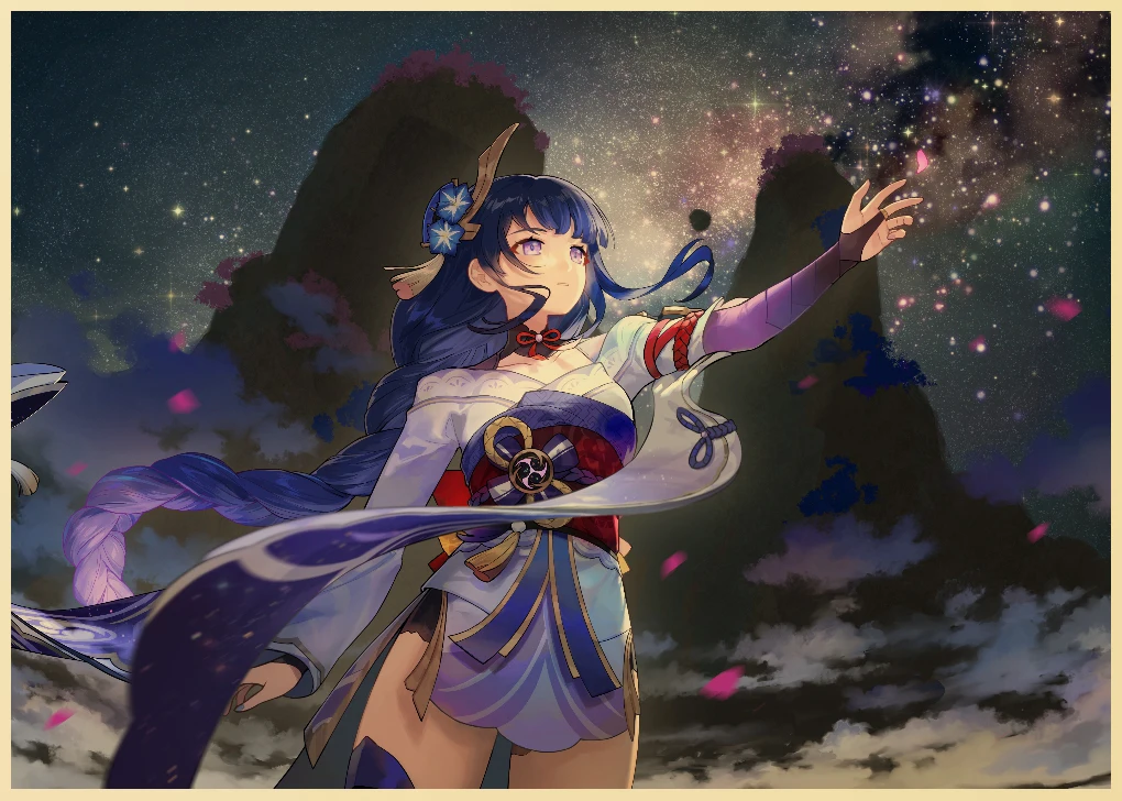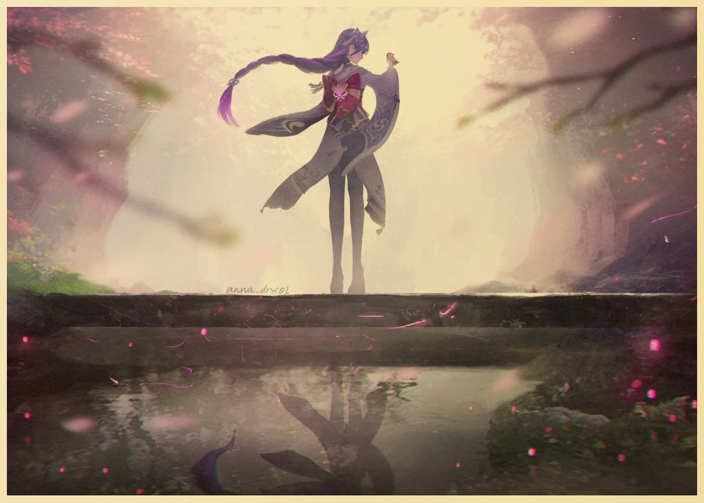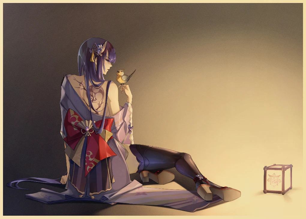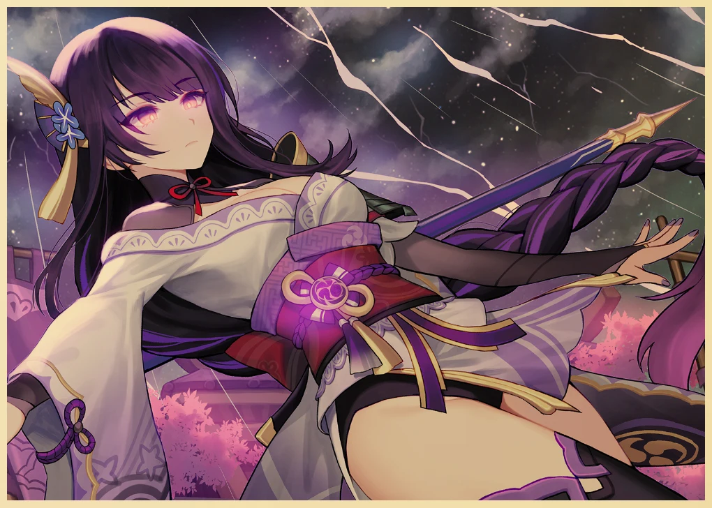 Популярная игра Genshin Impact персонаж: Raiden Shogun постер, ВИНТАЖНАЯ фотография, художественная живопись, домашний декор, наклейка на стену